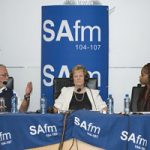 Ms Moleo then introduced Professors Beukes and Kinnaird to the radio and live audiences. Professor Beukes was first up and started by briefly outlining the aims of DST-NRF CIMERA. He then explained why South Africa is blessed with so many valuable mineral commodities. Professor Kinnaird then built on the theme by concisely outlining the important features of the Witwatersrand Basin gold deposits, the Bushveld Complex platinum group metal, chromium and vanadium deposits, and the diamond-bearing kimberlite pipes. Professor Beukes concluded the lecture with his views on the world-class manganese and iron deposits hosted in the Transvaal Basin. Questions were then invited from the live audience and these were succinctly answered by the two speakers.